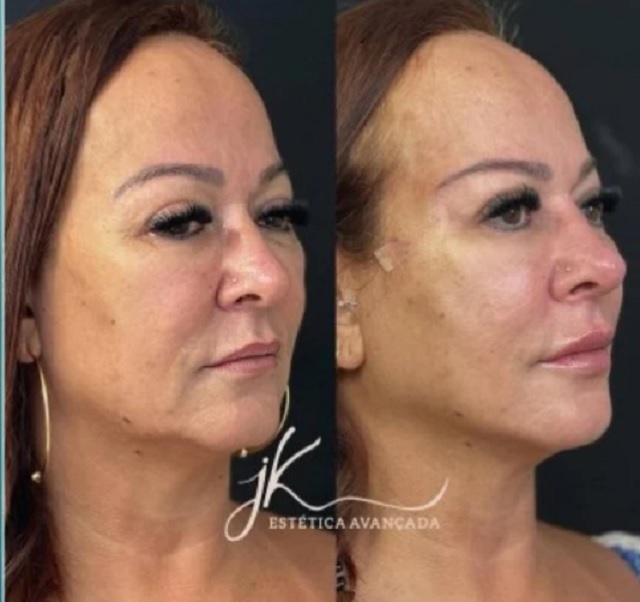 Em uma só sessão, Nadine colocou fios de sustentação com garras PDO, fez lifting facial, preenchimento e hidratação labial, aplicação de botox e estímulo de colágeno.
