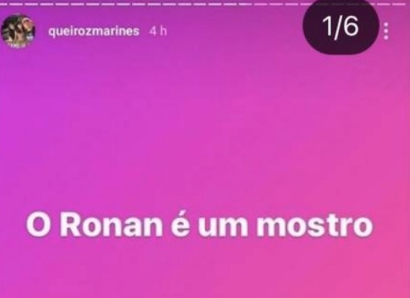 Confira o que ela escreveu: "O Ronan é um monstro. Nunca mais você vai me humilhar, Ronan. Sou um ser humano. Você não tem o direito de me tirar minha família. Você não pode determinar hora nem dia para eu ver minha filha e minha neta. Você não manda nelas. Não vou mais sofrer calada.
