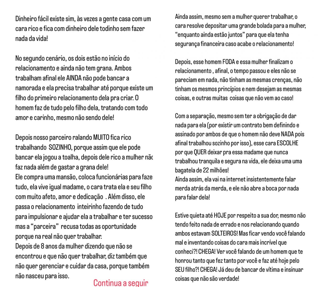No Instagram, a ex-BBB partiu para o ataque afirmando que Camila “casou com um homem rico e ficou com o dinheiro dele sem fazer nada da vida”, além de expor que Thiago teria deixado R$ 22 milhões na conta da ex para que ela tivesse segurança caso o relacionamento acabasse. Maíra também disse que ficou quieta para não machucar os sentimentos de Camila, mas que agora "Chega" e não vai mais ficar calada . Leia na íntegra o que ela escreveu: