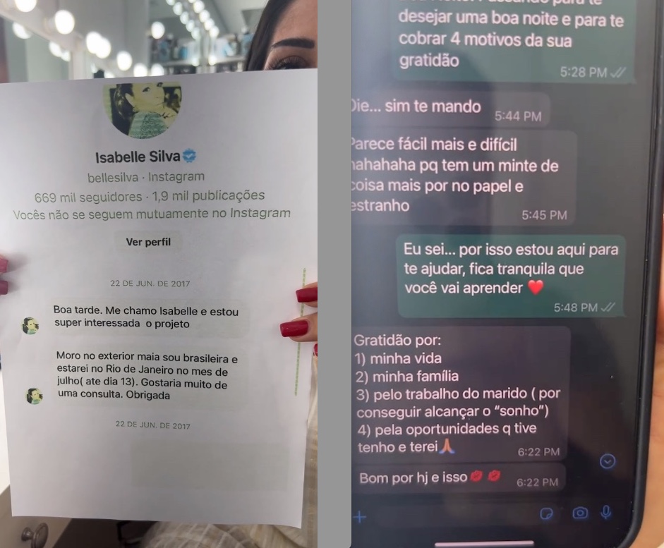 A coach imprimiu papéis com fotos, conversas e até um áudio enviado pelo jogador, provando que não só ele, como também Bella contrataram seus serviços para entrar em forma. Maíra começou mostrando uma mensagem de "gratidão" que a mulher do jogador lhe enviou após a conclusão do programa, e também exibiu a primeira conversa no Instagram, iniciada por Belle.