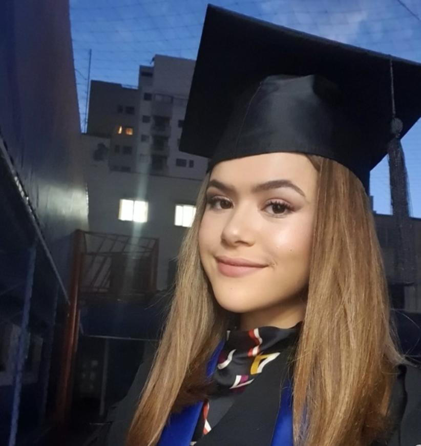 "E lá se vai a etapa mais longa da minha vida kkkkk, obrigada a todos que fizeram parte disso. Um ciclo muito especial se encerra e mal posso esperar pra saber qual será o próximo capítulo da minha vida (por enquanto só consigo pensar em FERIAS KKKKK). grata, +A", escreveu ela, que publicou fotos de beca.