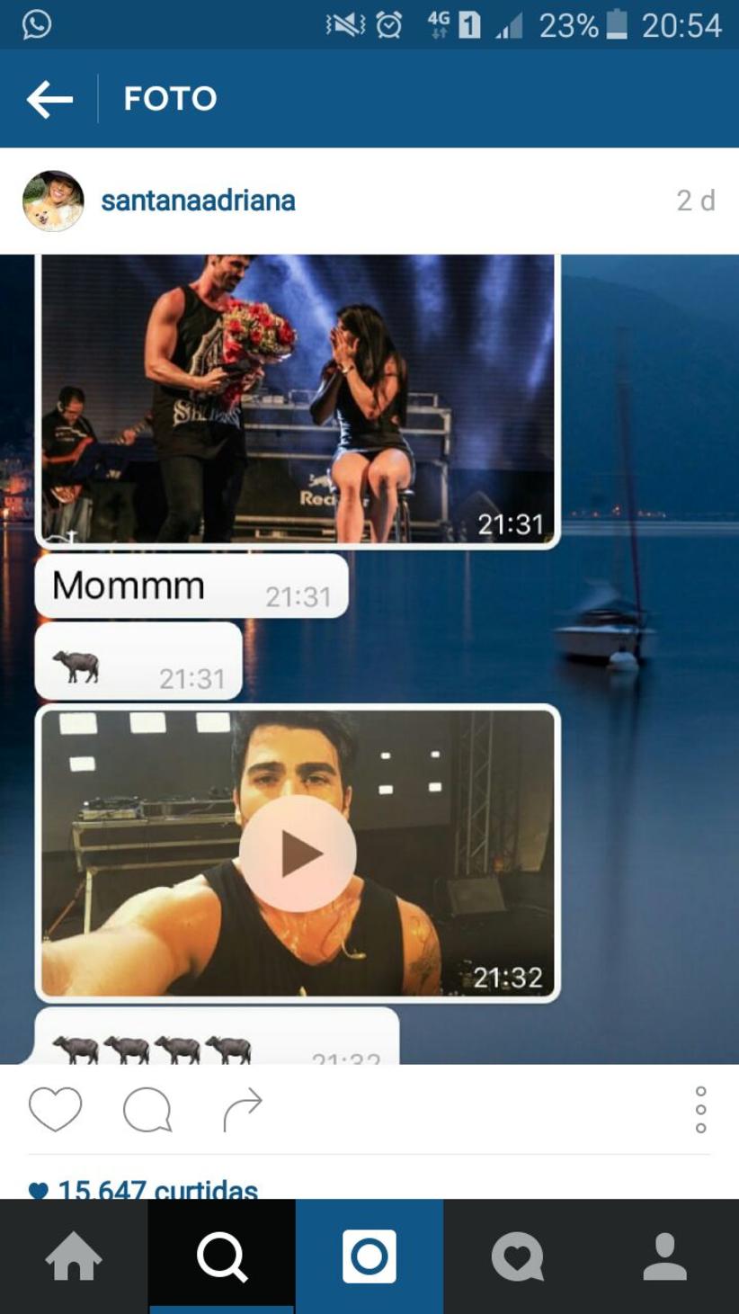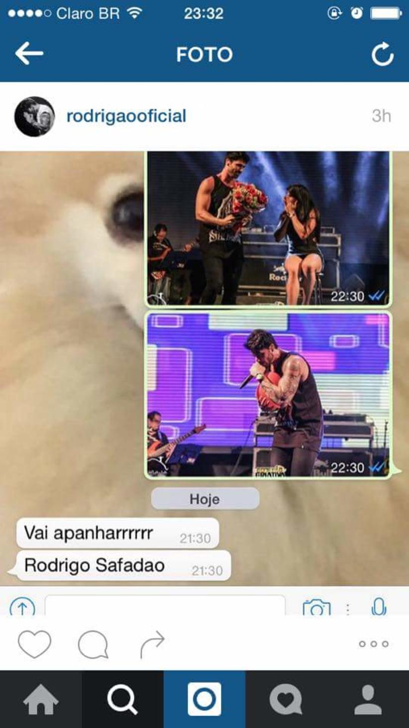O sertanejo chamou uma bela manauara para subir ao palco e cantou uma música romântica enquanto lhe entregava um buquê de rosas. Além disso, durante um funk, outras fãs da cidade subiram no palco a convite do cantor para dançar. Ao ver as fotos e o vídeo na internet, a mãe de Adriana, Maria da Penha, resolveu mostrar a cena para a filha pelo WhatsApp, e ainda chamou o genro de ‘safadão’. Brincando mas em tom de alerta, ela ainda simulou barulhos e postou emoticons que remetem ao famoso ‘chifre’: “Mooo”.