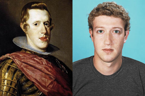 O rei Filiipe IV da Espanha, e Mark Zuckerberg, criador do Facebook.
