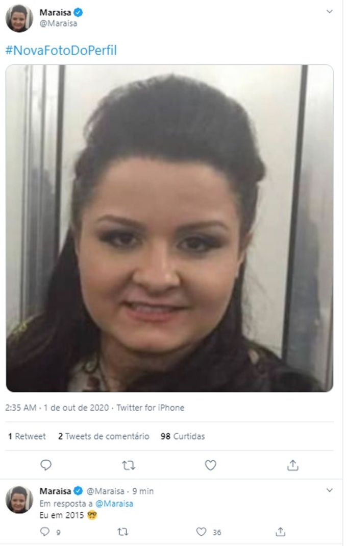 Maraisa, da dupla com Maiara, compartilhou uma foto antiga na madrugada desta quinta-feira (1) em seu perfil no Twitter e impressionou com a mudança.