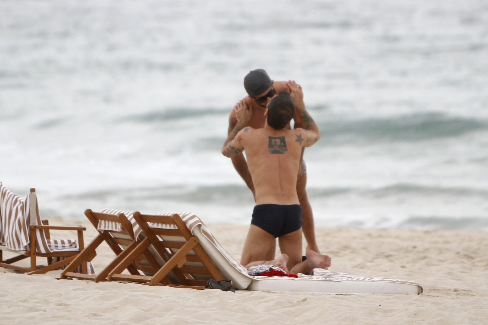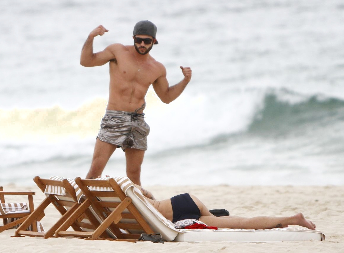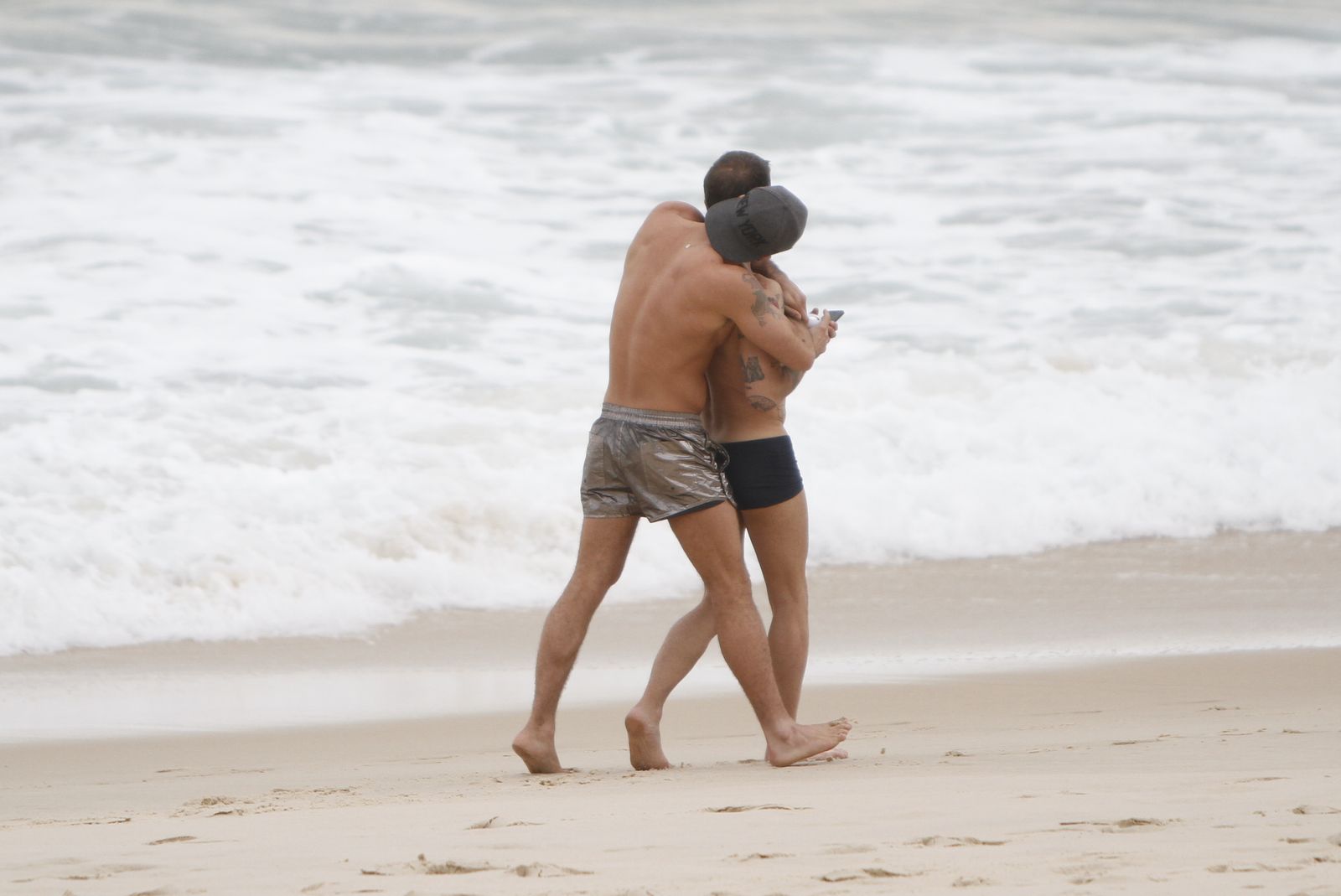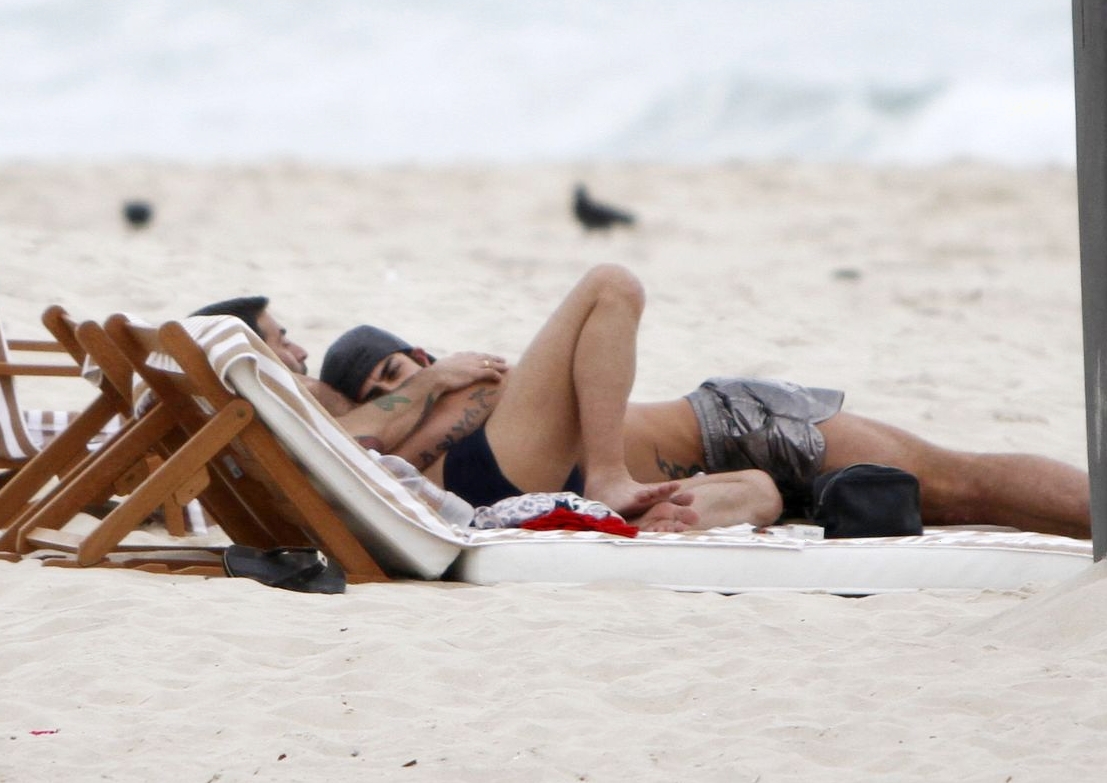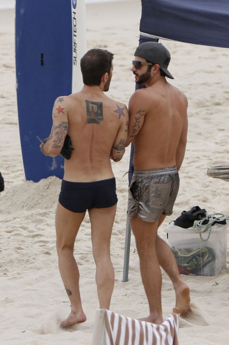 O dois, que andam gerando polêmica e por outro lado, fazendo sucesso graças aos corpões em forma e suas demonstrações públicas de afeto, curtiram a praia ao lado de dois seguranças, e não se importaram com os paparazzi.