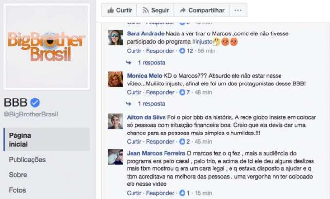 Expulso do reality, Marcos não apareceu no vídeo e os internautas criticaram a Globo por isso. Para muitos foi injusto o fato do médico não ter aparecido na homenagem mesmo tendo tido momentos de destaques no programa.
