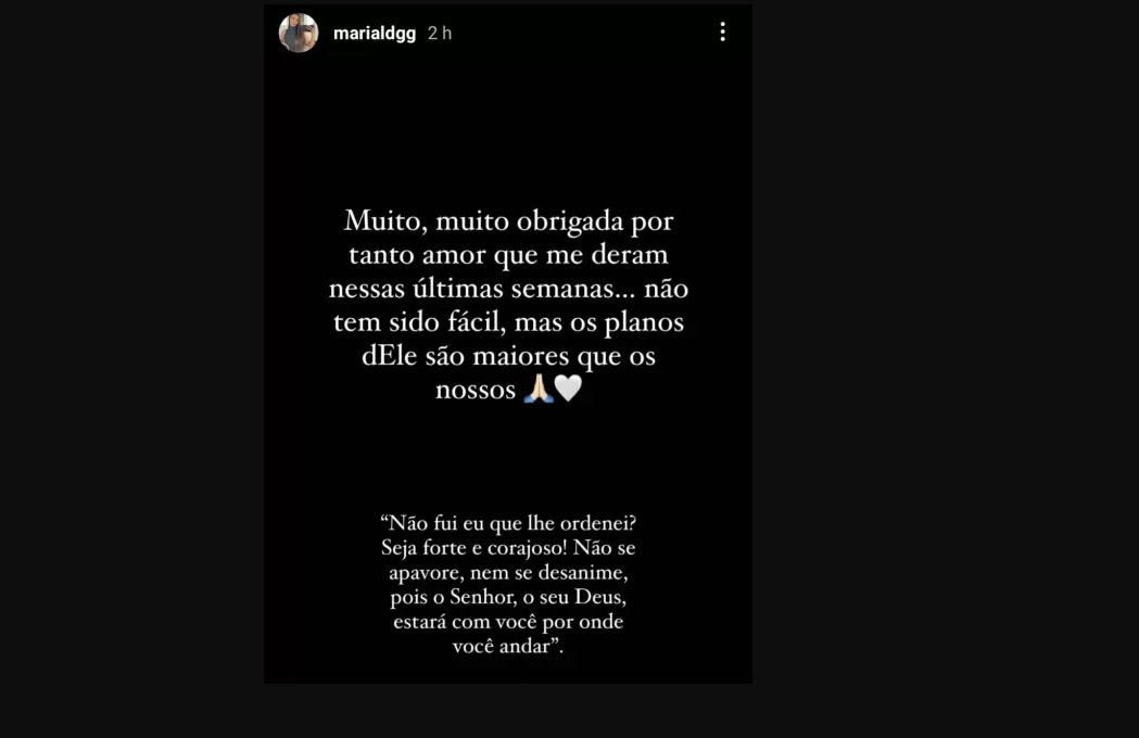 Maria também agradeceu as mensagens de apoio que vem recebendo: "Muito, muito obrigada por tanto amor que me deram nessas últimas semanas...".
