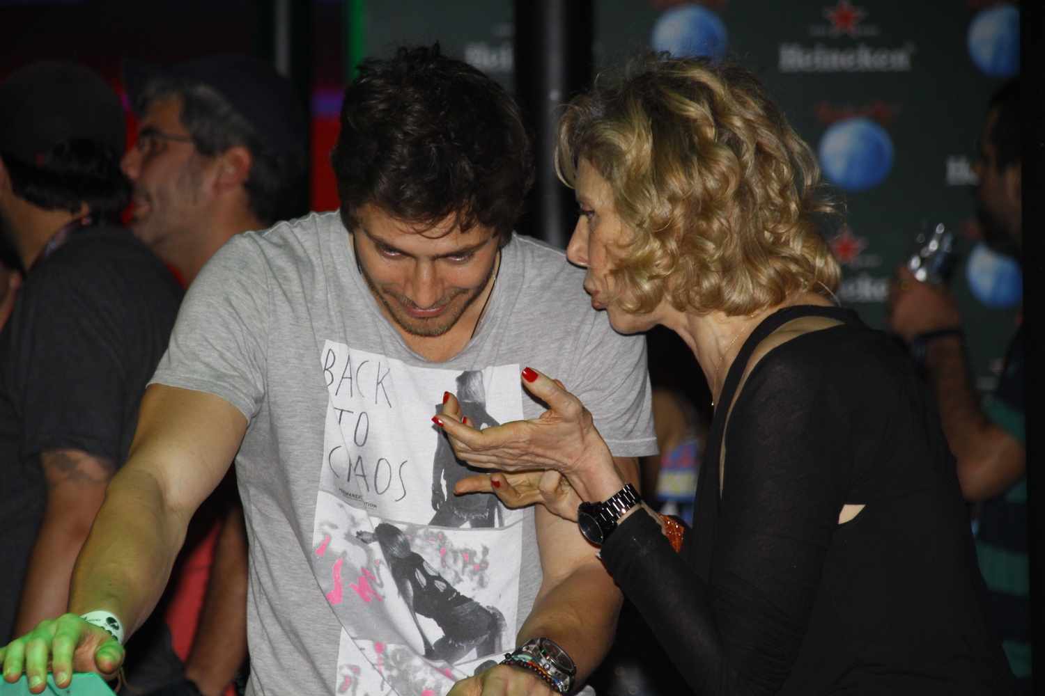 Marília Gabriela curtiu muito a noite do domingo (15) no Rock in Rio. A jornalista e apresentadora conversou ao pé do ouvido com André Bankoff, ator de "Saramandaia", em um longo bate-papo.