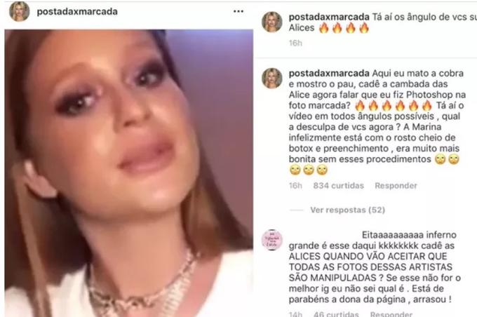 “Dá pra ver que ela encheu a cara de botox, ela fala e a boca mal mexe… não precisava disso”, disse uma internauta. Alguns perfis de fotoca também publicaram o vídeo ressaltando a mudança: “A Marina infelizmente está com o rosto cheio de botox e preenchimento, era muito mais bonita sem”, comentou o perfil.