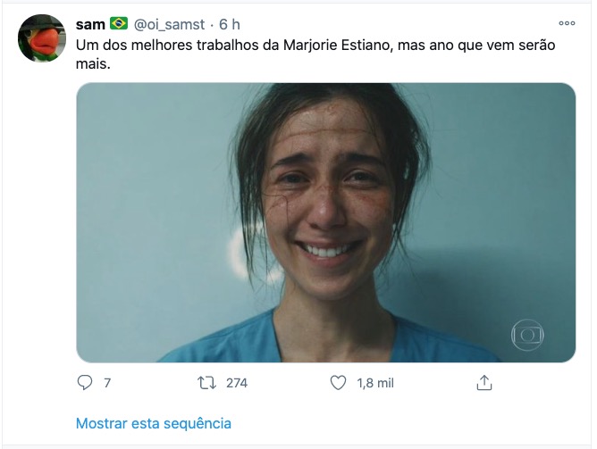 O nome da artista foi parar nos assuntos mais comentados do Twiiter, e os internautas aproveitaram para elogiar o trabalho da atriz no especial da Globo, Sob Pressão: Plantão Covid, que emocionou muita gente.