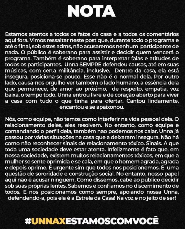 Matheus Torres chamou atenção dos telespectadores e também de Nicole após ser grosseiro com sua affair no "Estrela da Casa", Unna X. A situação gerou até um pronunciamento da equipe da cantora, citando "sinais de relacionamento tóxico".