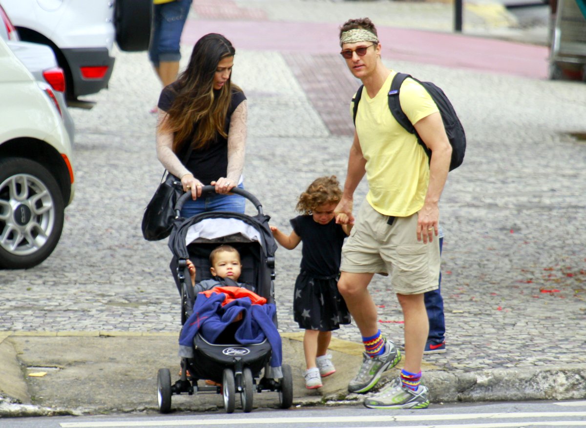 O ator americano Matthew Mccounaghey, astro de "Interstellar" (2014), "Como Perder um Homem 10 dez Dias", e "Magic Mike" está no Brasil curtindo suas férias com a esposa Camila Alves e os seus três filhos, Levi, Vida e Livingston. Nesta terça-feira, 24, ele passeou pelas ruas de Belo Horizonte, onde a esposa nasceu, e o grupo aproveitou para degustar da culinária brasileira em uma churrascaria na cidade mineira.