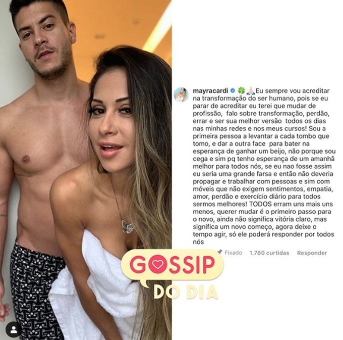 Após a notícia da conversão de Arthur Aguiar, Mayra Cardi se pronunciou nesta terça-feira (29) e disse acreditar sempre na transformação do ser humano.