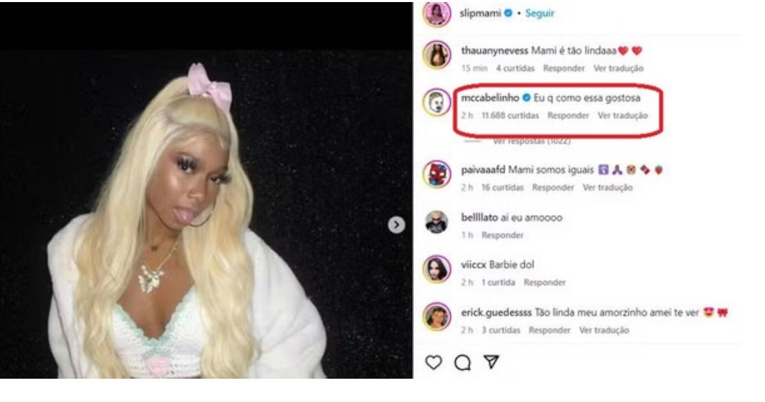 MC Cabelinho causou um comentário polêmico na foto da atual namorada, a rapper Slipmami.
