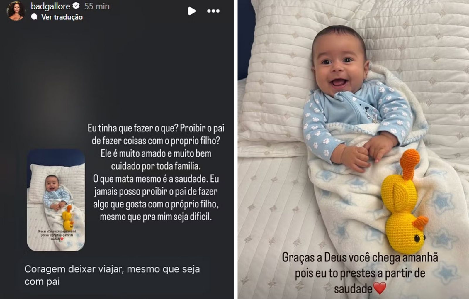 Ela postou uma foto do bebê e desabafou: "Graças a Deus você chega amanhã, pois eu estou prestes a partir de saudade".