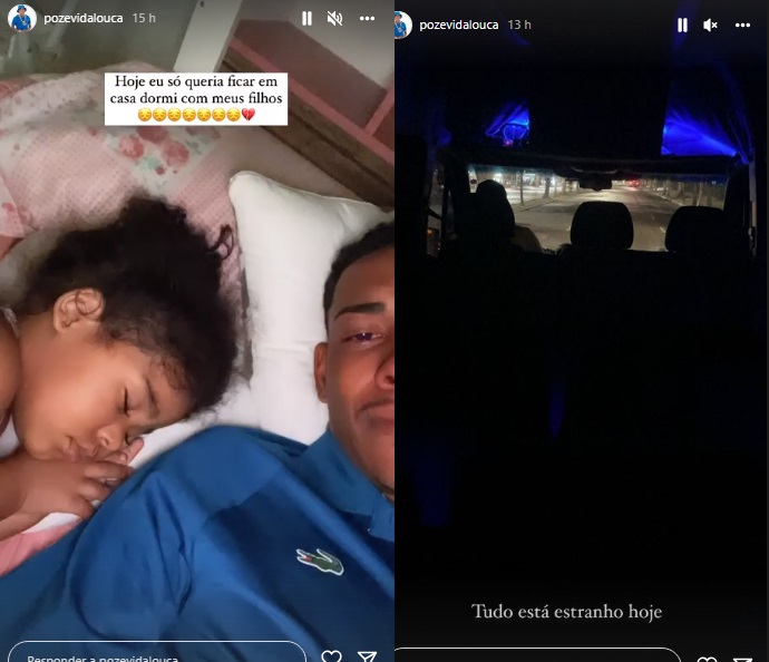 Outro momento que assustou fãs foi quando Poze deixou um tom de despedida em um storie postado ao lado da filha mais velha, Julia. “Fico triste, porque quando ela acordar, não estarei mais aqui”.