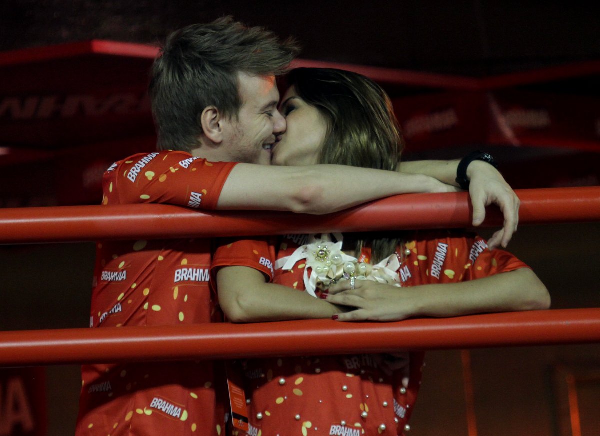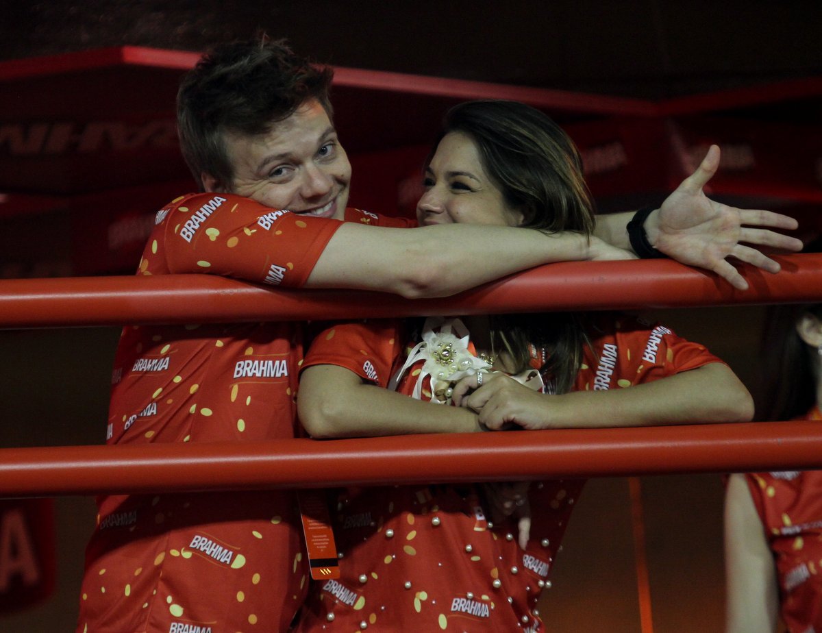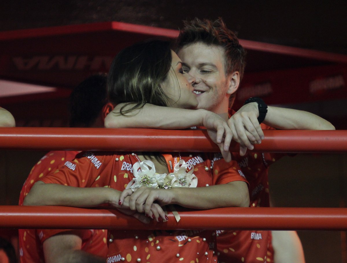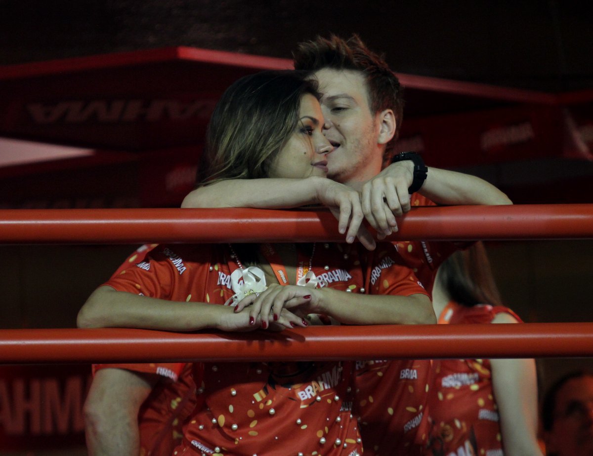 Na noite deste domingo (10), Michel Teló aproveitou para namorar muito com a atriz Thaís Fersoza, no camarote que reunia diversos famosos na sapucaí.