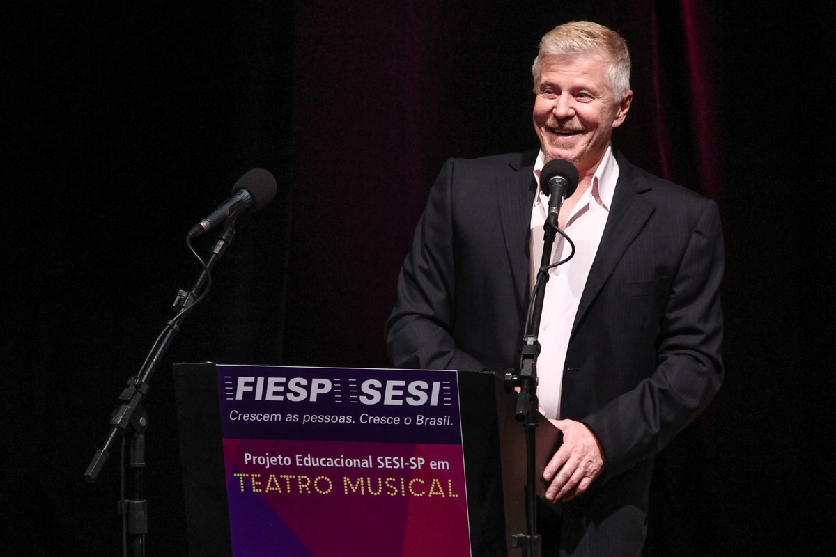 A Coletiva de Imprensa do lançamento do projeto educacional “Teatro Musical SESI/SP” com a presença do presidente da FIESP e do SESI-SP, Paulo Skaf; do superintendente do SESI-SP e diretor regional do SENAI-SP, Walter Vicioni e dos atores Miguel Falabella, Stella Miranda e Cleto Baccic.