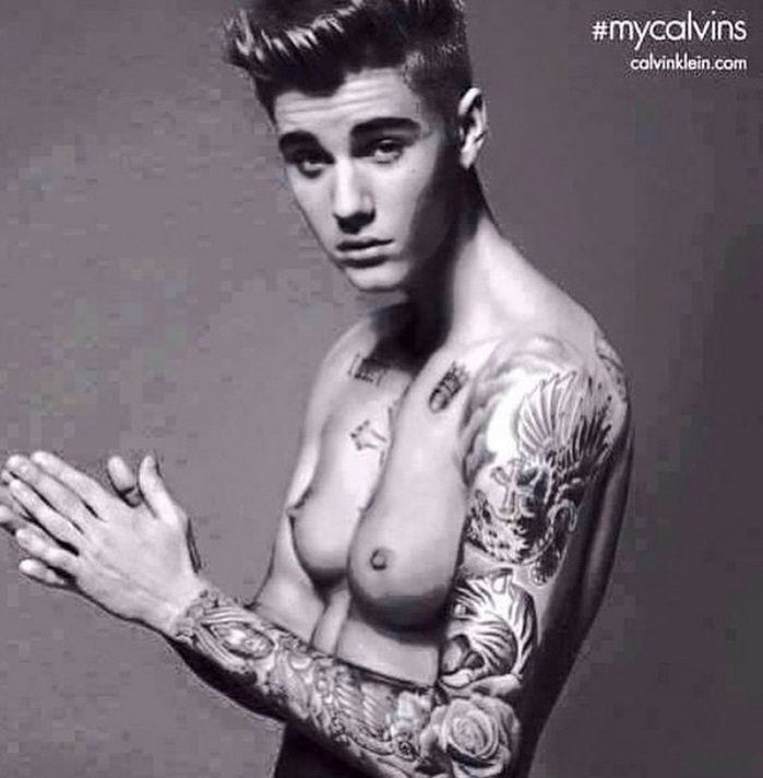 Ainda nesta semana, ela chagou a publicar uma foto de Bieber com seios de mulher.