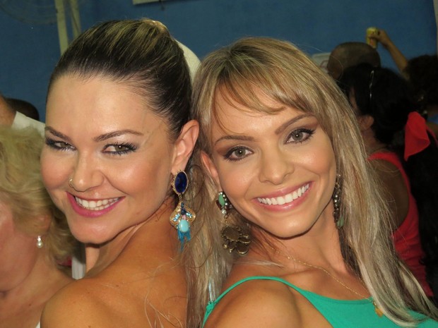 A Miss Bumbum pareceu não se importar e posou toda sorridente ao lado da amiga Maísa Magalhães, que vai descer na mesma escola que ela.