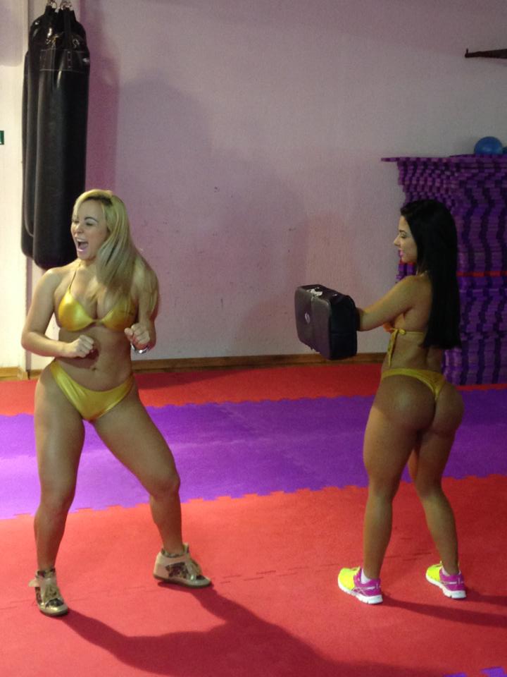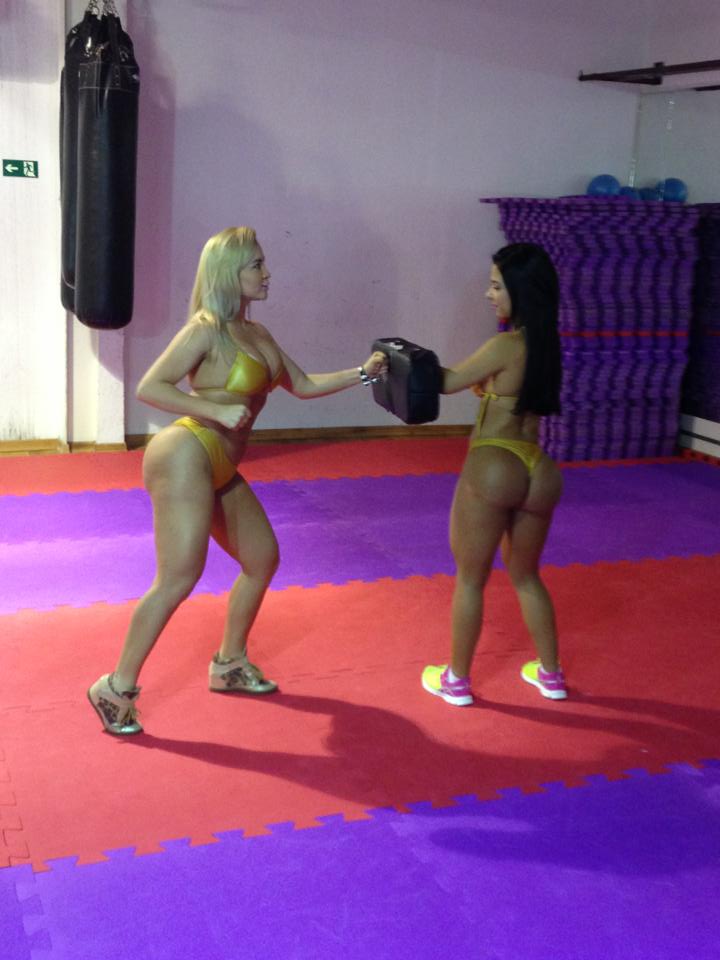 Sheyla Mell, candidata que representa o Ceará no Miss Bumbum Brasil 2013, treinou defesa pessoal em um evento do concurso na academia e disse que adora lutas e pratica sempre que tem tempo em sua agenda.