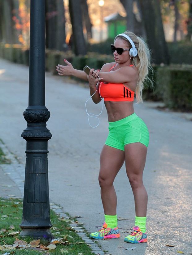 Indianara Carvalho mostrou toda sua boa forma na Espanha, nesta quarta-feira (10). A Miss Bumbum se exercitou ao ar livre, em Barcelona, usando apenas um top e short curtinho, exibindo corpaço sarado. A loira colocou uma calça legging em seguida, e continuou os exercícios.