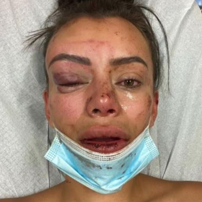"Ele abriu a porta e foi para a minha sala novamente. Comecei a gritar com ele que realmente queria que ele fosse embora. Então ele perdeu a cabeça e me deu um soco no rosto várias vezes. Eu imediatamente senti meu nariz quebrando e não podia fazer nada para me proteger. Ele continuou me socando logo que caí no chão, e enquanto eu estava caída ele continuou me batendo e chutando por todo o meu corpo. Fiquei com tanto medo quando vi todo o sangue escorrendo do meu rosto e naquele momento rastejei para o corredor do meu apartamento, e pedi aos meus vizinhos para chamarem a polícia”, detalhou na rede social.