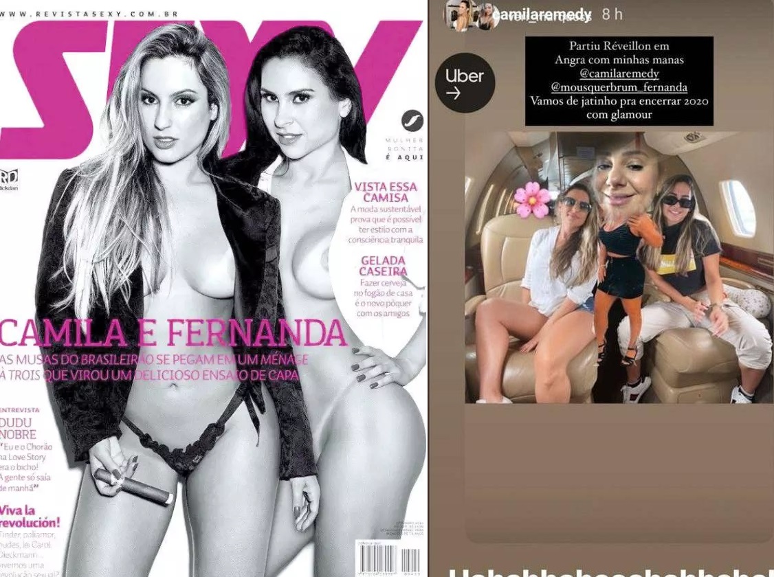 Já as modelos Camila Remedy e Fernanda Brum, que posaram juntas para a revista Sexy, chegaram de Porto Alegre, de jatinho bancado pelo jogador. “Vamos de jatinho para encerrar o ano com glamour”, escreveram no Instagram.