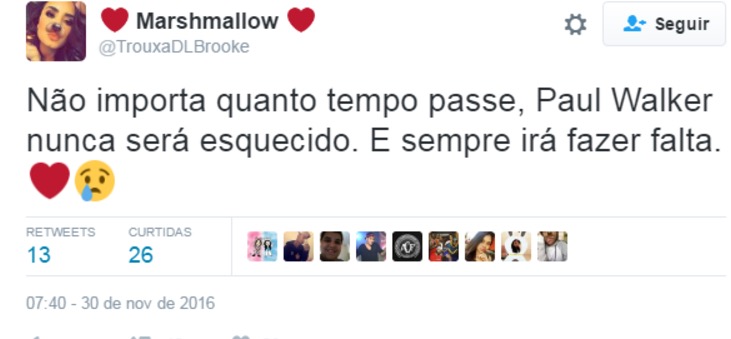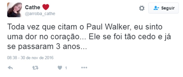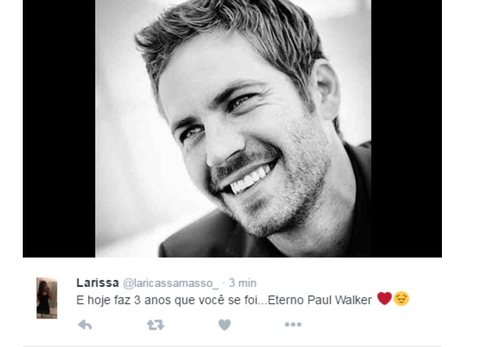 Nesta quarta-feira (30) completa 3 anos da morte de Paul Walker e fãs usaram as redes sociais para homenagear o ator de “Velozes e Furiosos”.
