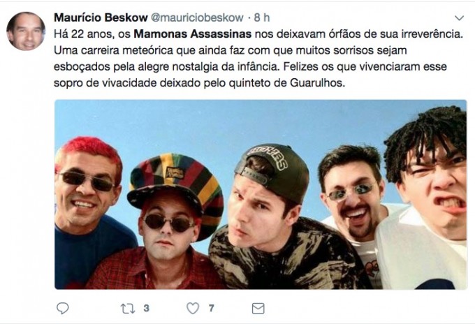 “Há 22 anos, os Mamonas Assassinas nos deixavam órfãos de sua irreverência. Uma carreira meteórica que ainda faz com que muitos sorrisos sejam esboçados pela alegre nostalgia da infância. Felizes os que vivenciaram esse sopro de vivacidade deixado pelo quinteto de Guarulhos”, escreveu um fã.