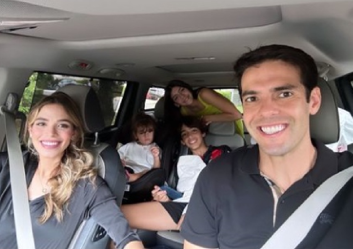 Antes do parto, Carol compartilhou também uma foto da família --- ela, Kaká, a filha Esther e os dois filhos mais velhos do ex-jogador, frutos do casamento com Carol Celico --- a caminho do hospital.