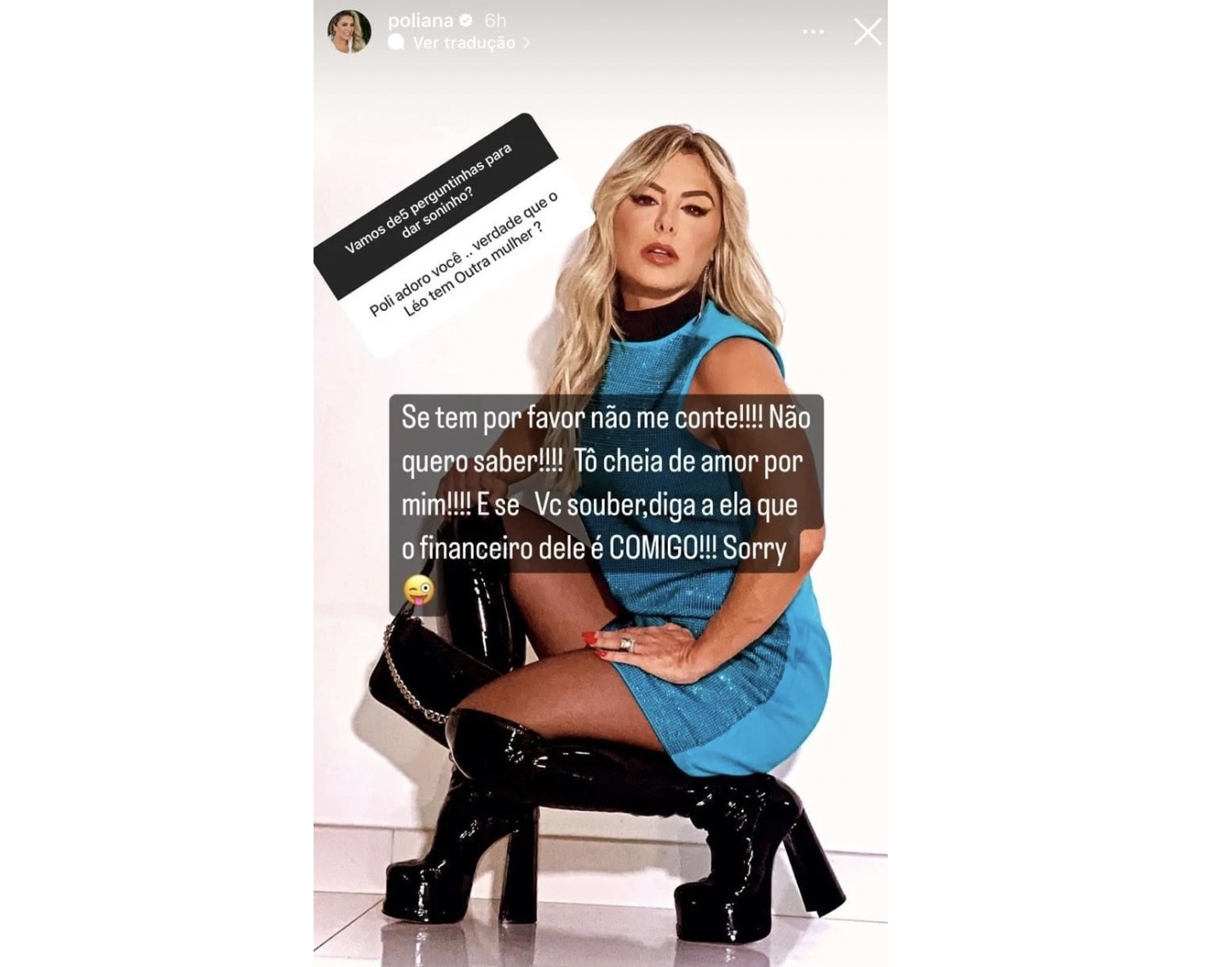 Poliana Rocha, mulher de Leonardo, mandou um recado para alguma possível amante do seu marido. A mãe de Zé Felipe disse que prefere não saber caso o cantor tenha um caso extraconjugal e deixou claro que a parte “financeira” dele é com ela.