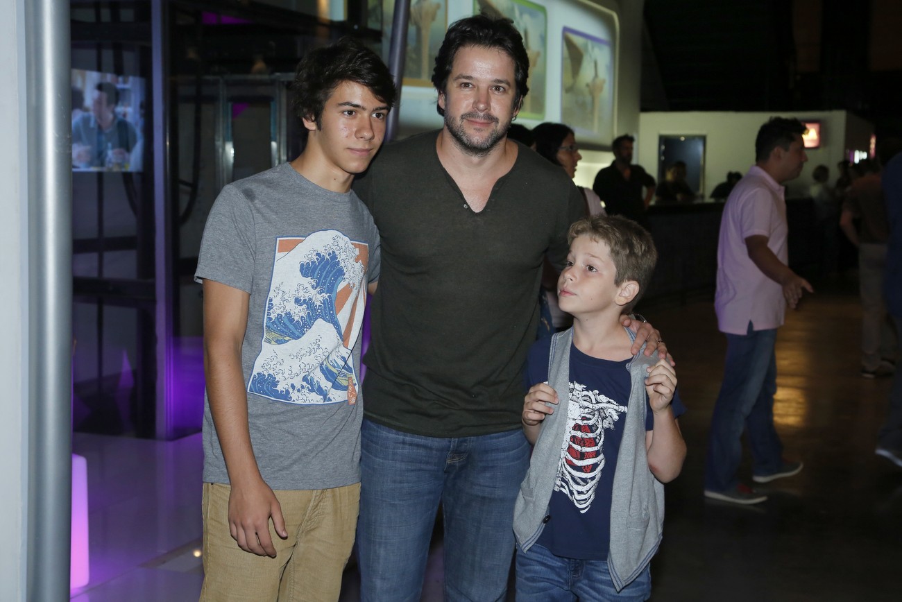 Acompanhado de seus filhos, Murilo Benício prestigiou o espetáculo musical " A Família Addams ", estrelando Marisa Orth e Daniel Boaventura como Mortícia e Gomes . Vários famosos compareceram e posaram para os fotógrafos, confira as fotos:
