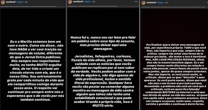 Depois que Marília Mendonça confirmou o fim do namoro com Murilo Huff, o cantor também resolveu se manifestar sobre a separação.