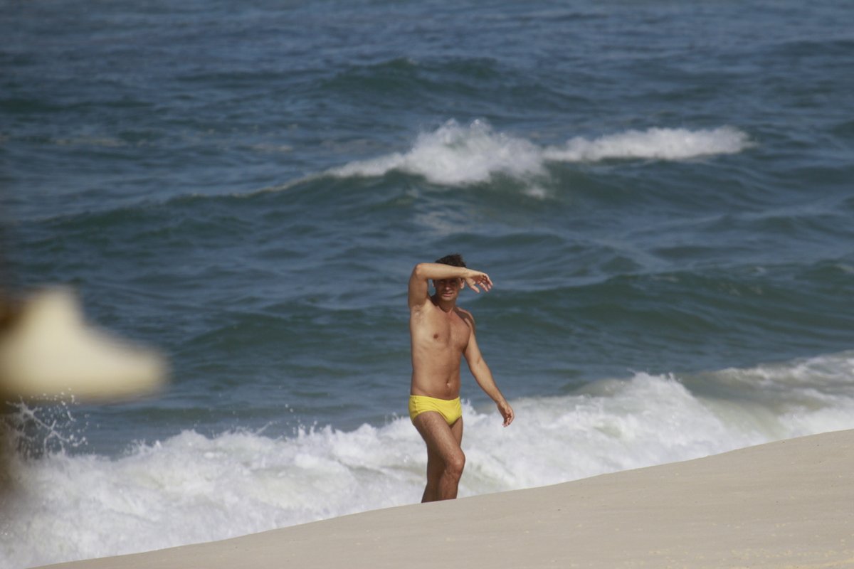 O ator resolveu tirar a manhã de folga das gravações de "Salve Jorge", tirando as 'energias negativas' do Capitão Élcio, e usou uma sunga amarela para pegar um sol na Praia da Reserva, no Rio de Janeiro.