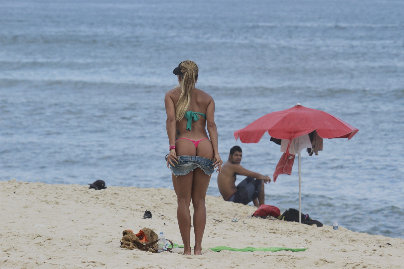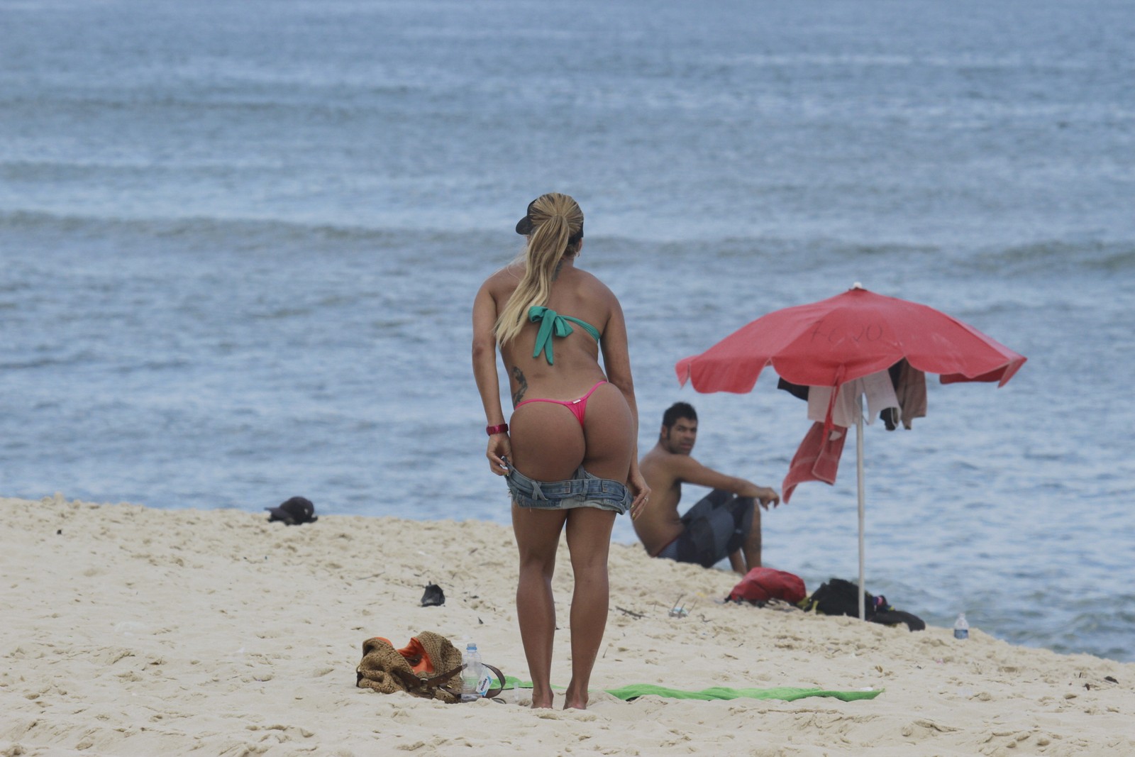 A morena foi à praia do Recreio dos Bandeirantes, no Rio de Janeiro, e aproveitou a presença do fotógrafo para exibir suas curvas.