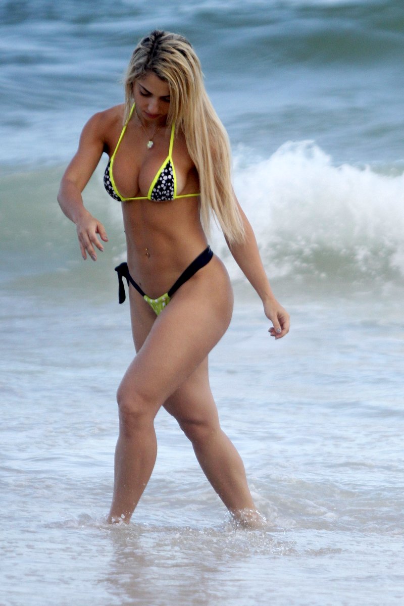 'Legendete' e 'Miss Bumbum Rio de Janeiro', a loira exibiu seus atributos enquanto tirava a roupa para mergulhar no mar