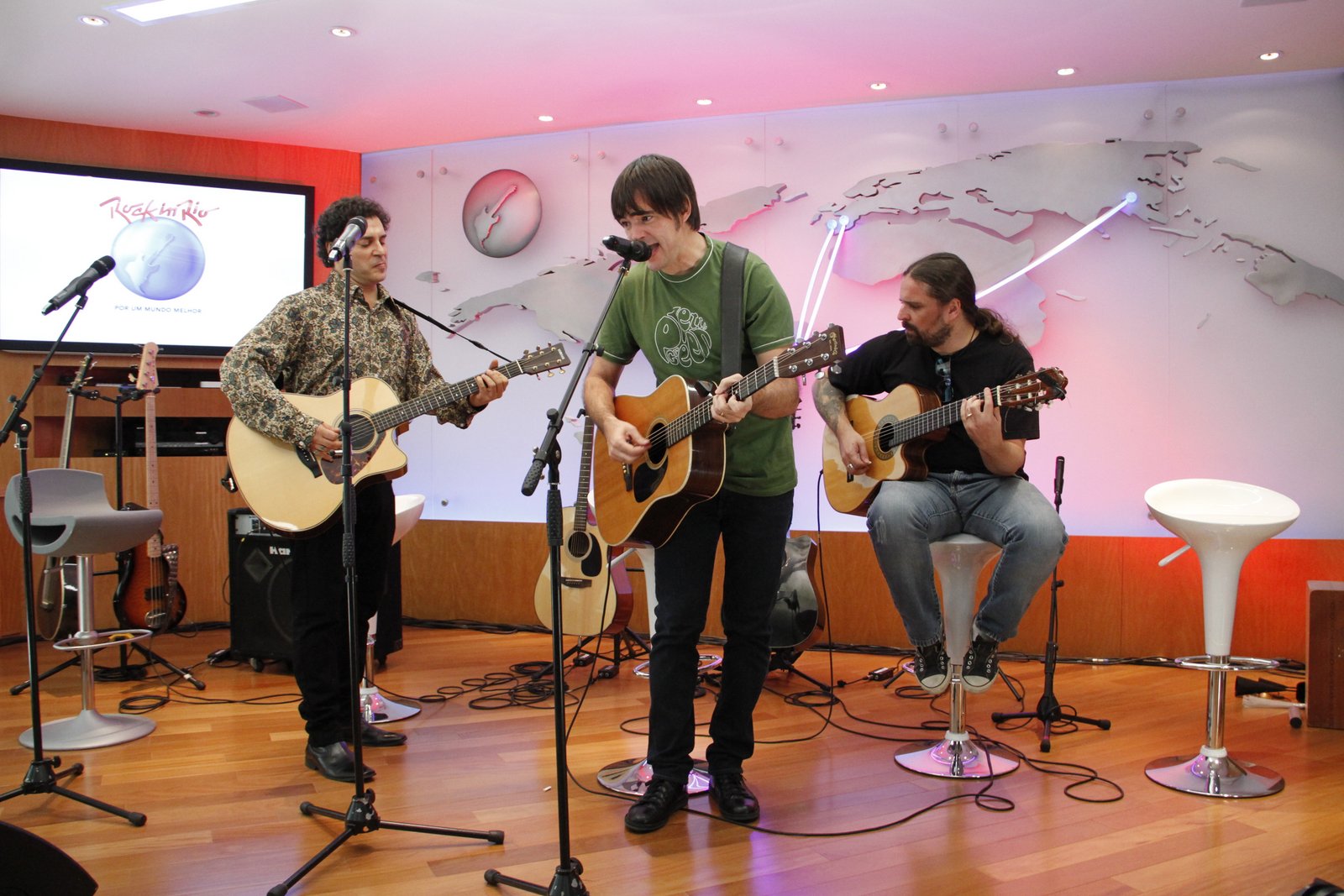 Rogério Flausino (do Jota Quest ), Samuel Rosa (Skank) Frejat ( Barão Vermelho ), Andreas Kisser ( Sepultura ) Dinho Ouro Preto ( Capital Inicial ), Maria Gadú , Kadu Pelegrini (da banda Kiara ) foram alguns dos nomes que se reuniram na coletiva do festival Rock In Rio de 2013 . A reunião uniu os artistas no palco para uma pequena performance
