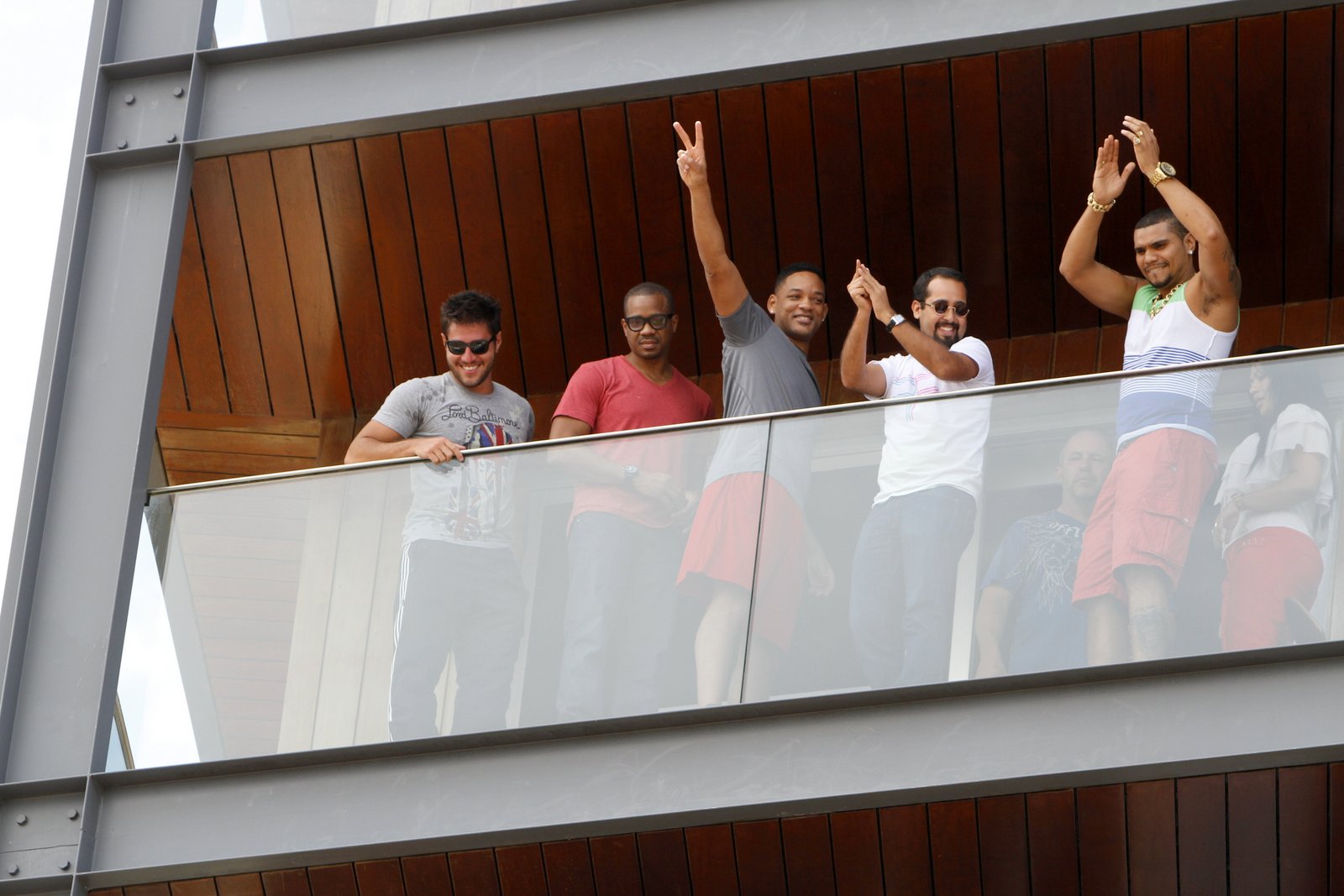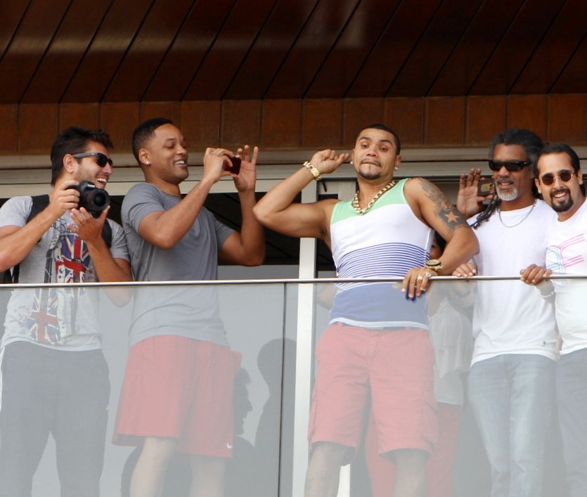 Os assessores e seguranças do ator estavam presentes e filmavam. A esposa de Naldo, " Mulher Moranguinho ", também compareceu. Logo no quarto abaixo do de Will Smith , estão hospedados os americanos Kim Kardashian (estrela de reality shows) e Kanye West (rapper), que estão aproveitando a companhia do astro para conhecer o país.