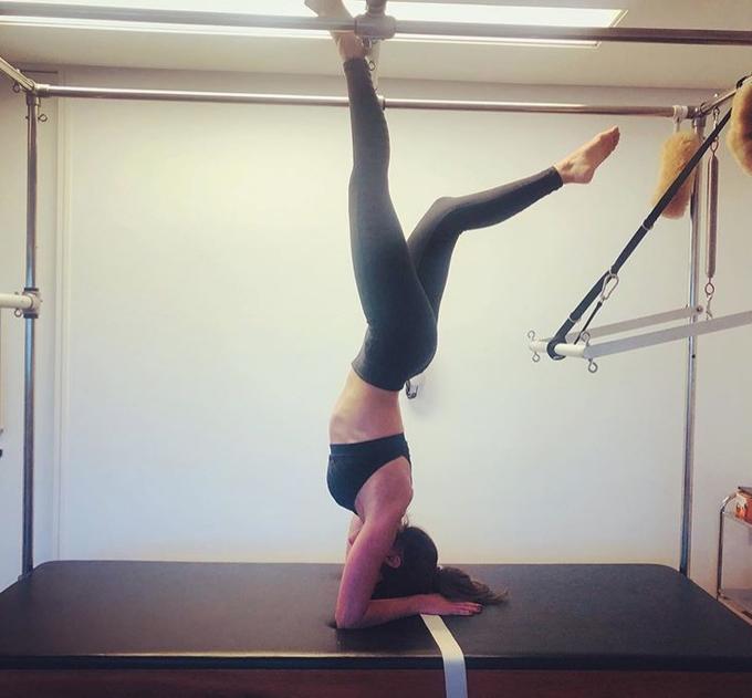 Também nesta terça, Maria mostrou que mantém a boa forma com pilates. Ela publicou uma foto em que aparece de cabeça para baixo durante um exercício.