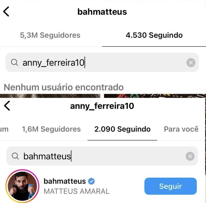 Internautas notaram o unfollow que repercutiu nas redes sociais nesta terça (11). Por enquanto Matteus e Deniziane não comentaram a respeito.