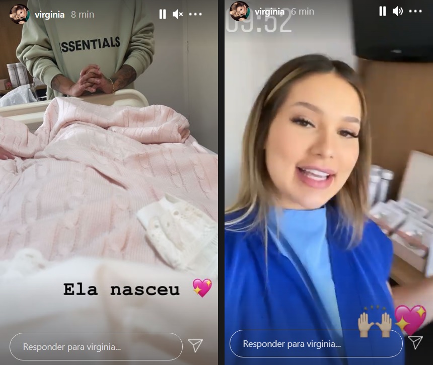 Virginia deixou gravado um Storie antes do parto, que foi publicado assim que a bebê veio ao mundo. "Se esse Storie foi postado é porque deu tudo certo".