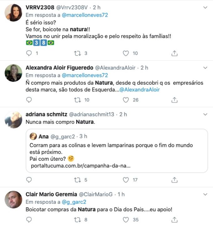 Porém os internautas não curtiram a ideia e, neste domingo (26), começaram a detonar a empresa no Twitter. “Deixa ver se eu entendi: o garoto propaganda da Natura, pra campanha do Dia dos Pais, é, na verdade, uma garota que virou um garoto. É isso produção???”, questionou um internauta. “A Natura acaba de perder um cliente, não vai ser eu q vou ficar olhando indiferente p essa bruta inversão de valores, e não me venha com essa babaquice de homofóbico”, criticou outro.