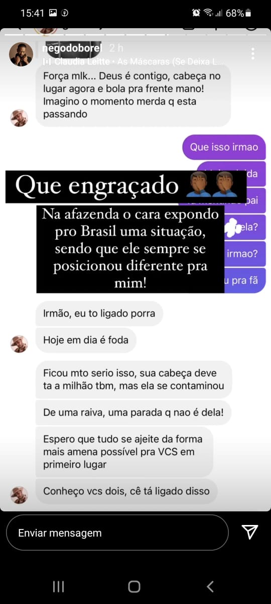 Após Gui Araújo revelar em rede nacional em A Fazenda que ficou meses com Jade Picon, pouco antes de entrar no reality, Nego do Borel resolveu fazer um exposed do até então amigo.