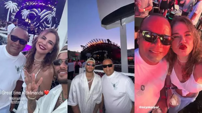 Esperando uma filha com Bruna Biancardi, Neymar Jr. está aproveitando alguns dias de folga do Paris Saint-Germain em Ibiza, na Espanha, ao lado do pai.