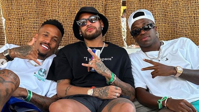 A namorada não acompanhou o jogador e está no Brasil. O jogador também curtiu Ibiza acompanhado dos solteiríssimos Vini Jr. e Éder Militão.