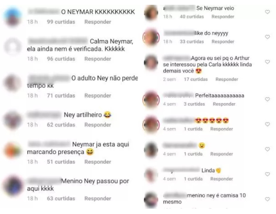 “Neymar já está marcando presença”, disse um internauta. “Menino Ney passou aqui”, comentou outro. “Calma, Neymar, ela ainda nem é verificada”, brincou um terceiro.