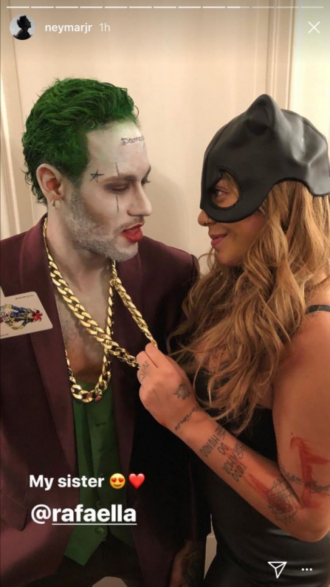 Neymar mostrou que entrou de cabeça no clima do Halloween e aproveitou para se divertir com uma fantasia bem produzida na noite desta terça-feira, dia 31.