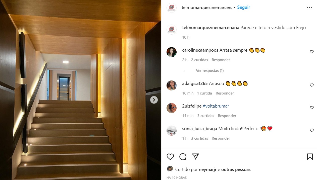 O jogador contratou Telmo Maia para realizar um projeto na sua mansão em Mangaratiba, no Rio de Janeiro, O pai da atriz é empresário no ramo da marcenaria. "Parede e teto revestidos com frejo", escreveu o perfil da empresa no Instagram.