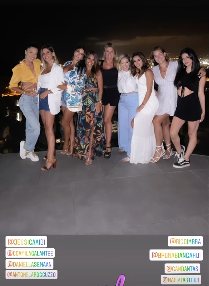 Bruna posou ao lado das mulheres dos jogadores em uma foto publicada por Jorgelina Cardoso, esposa de Dí María. Carol Dantas, mãe do filho de Neymar, também esteve no passeio ao lado do marido, Vinícius Martinez.